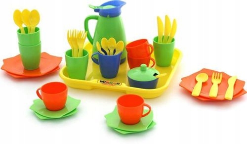 Пикник, полдник, обед, ужин и любые другие угощения. Оказывается, наши детские куклы и мягкие игрушки едят бесчисленное количество раз в день. Разнообразить веселье мы можем, подарив нашим детям набор посуды «Алиса» с подносом на 4 персоны от «Полесье Вейдер». В комплект входят: кувшин, сахарница с крышкой, четыре кружки, четыре чашки с блюдцами, четыре тарелки и четыре набора столовых приборов. Все подается на квадратном подносе. Качество используемого пластика гарантирует долговечность и безопасность изделия.
