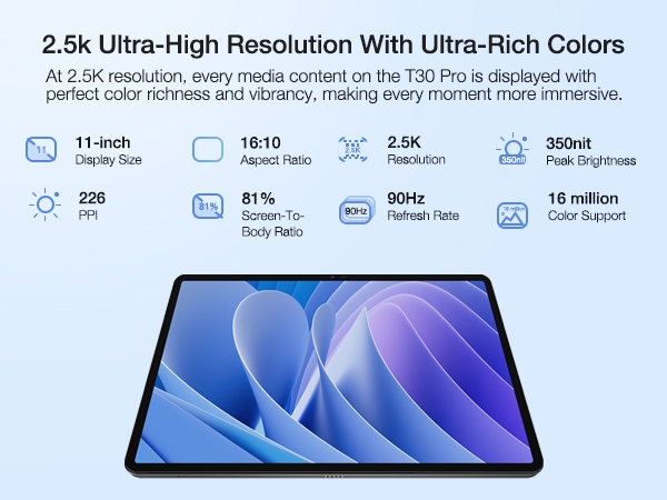 При разрешении 2,5K любой мультимедийный контент на T30 Pro воспроизводится с превосходной насыщенностью и яркостью цветов, поэтому каждый момент становится более интересным.