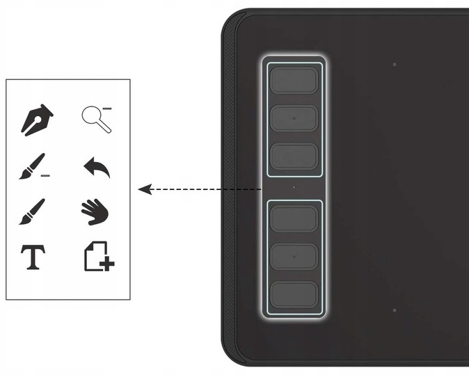 Планшет имеет 6 программируемых кнопок, которым можно назначить наиболее часто используемые функции, комбинации клавиш, сочетания клавиш и т. д. .