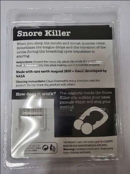На концах зажима имеются магниты (800+ Гаусс), которые имитируют естественный процесс мягкого введения воздуха из носовых ходов в дыхательные пути, что прекращает вибрацию язычка и мягкого неба при вдохе.