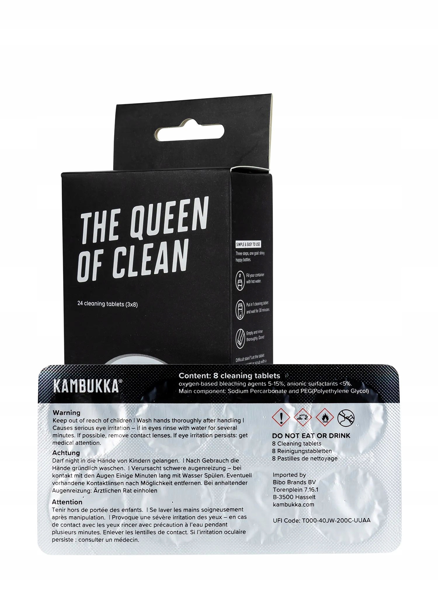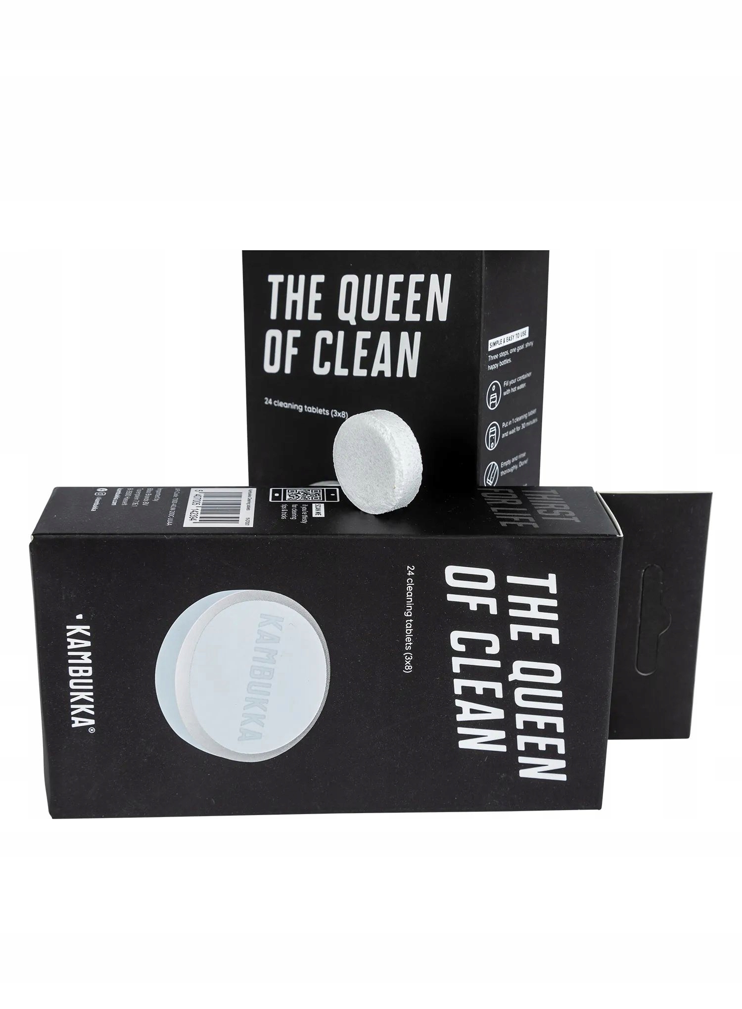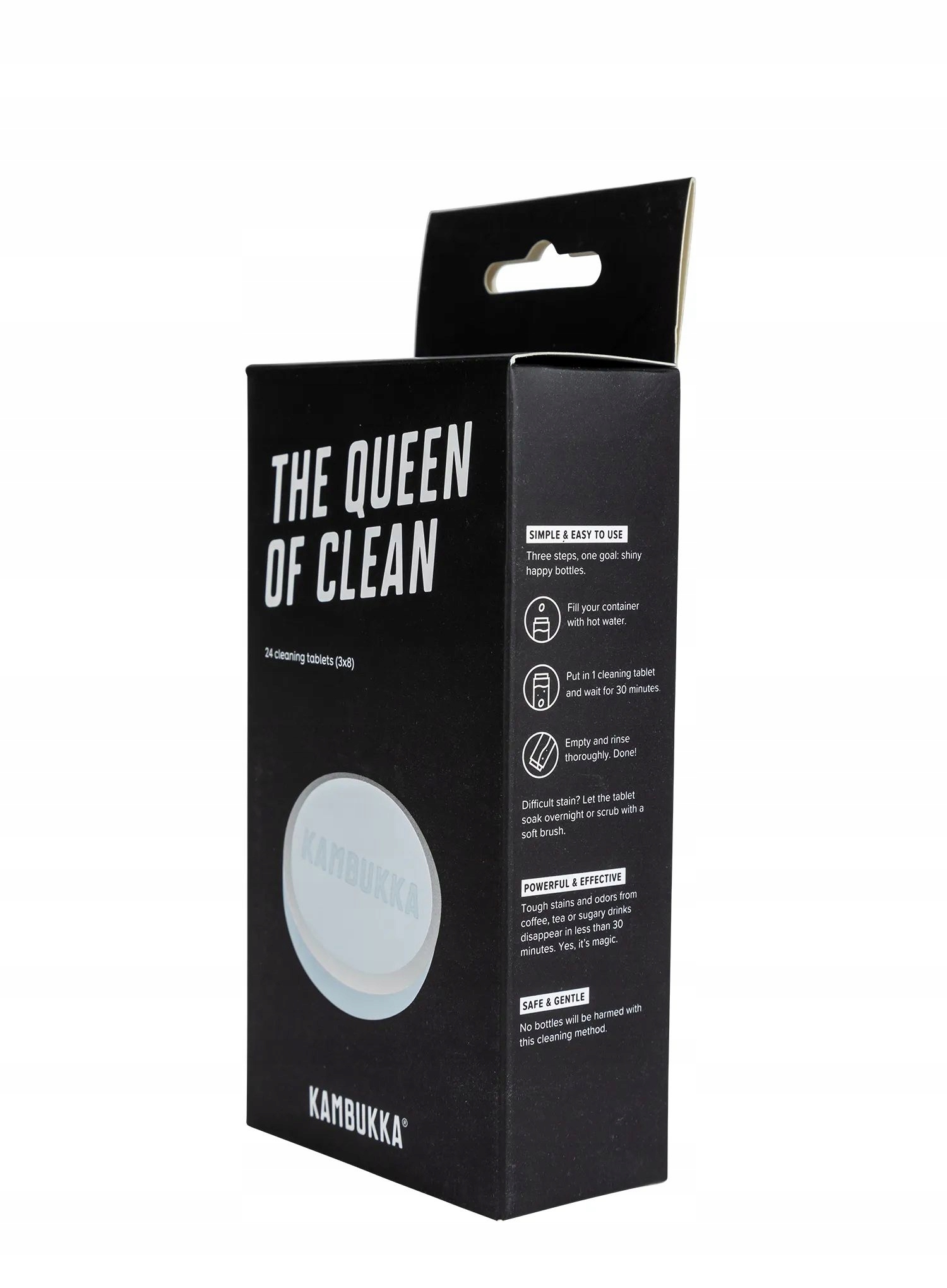 Чистящие таблетки Kambukka Queen of Clean позволяют быстро и эффективно удалить трудновыводимые пятна и запахи как с кофе, чая, так и сладких напитков. В большинстве случаев достаточно одной таблетки, чтобы очистить кружку или термос, а при заливке горячей водой для полной очистки сосуда требуется всего 30 минут.