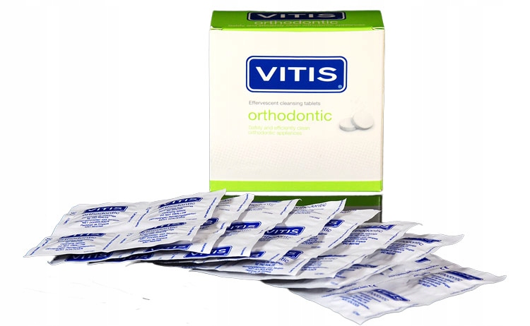 Ортодонтические таблетки Vitis эффективно и безопасно очищают съемные ортодонтические аппараты, удаляют зубной налет (биопленку), обеспечивая правильная гигиена полости рта.