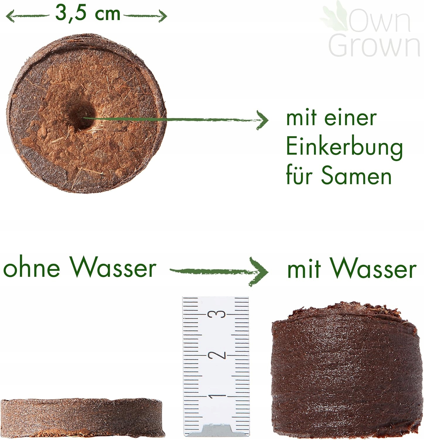 ➡️ Натуральное кокосовое волокно как экологическое начало – Таблетки OwnGrown изготавливаются из кокосовых отходов, создавая экологически чистый субстрат. Ваши семена окружены естественной средой, которая способствует образованию сильных и здоровых корней после посадки.