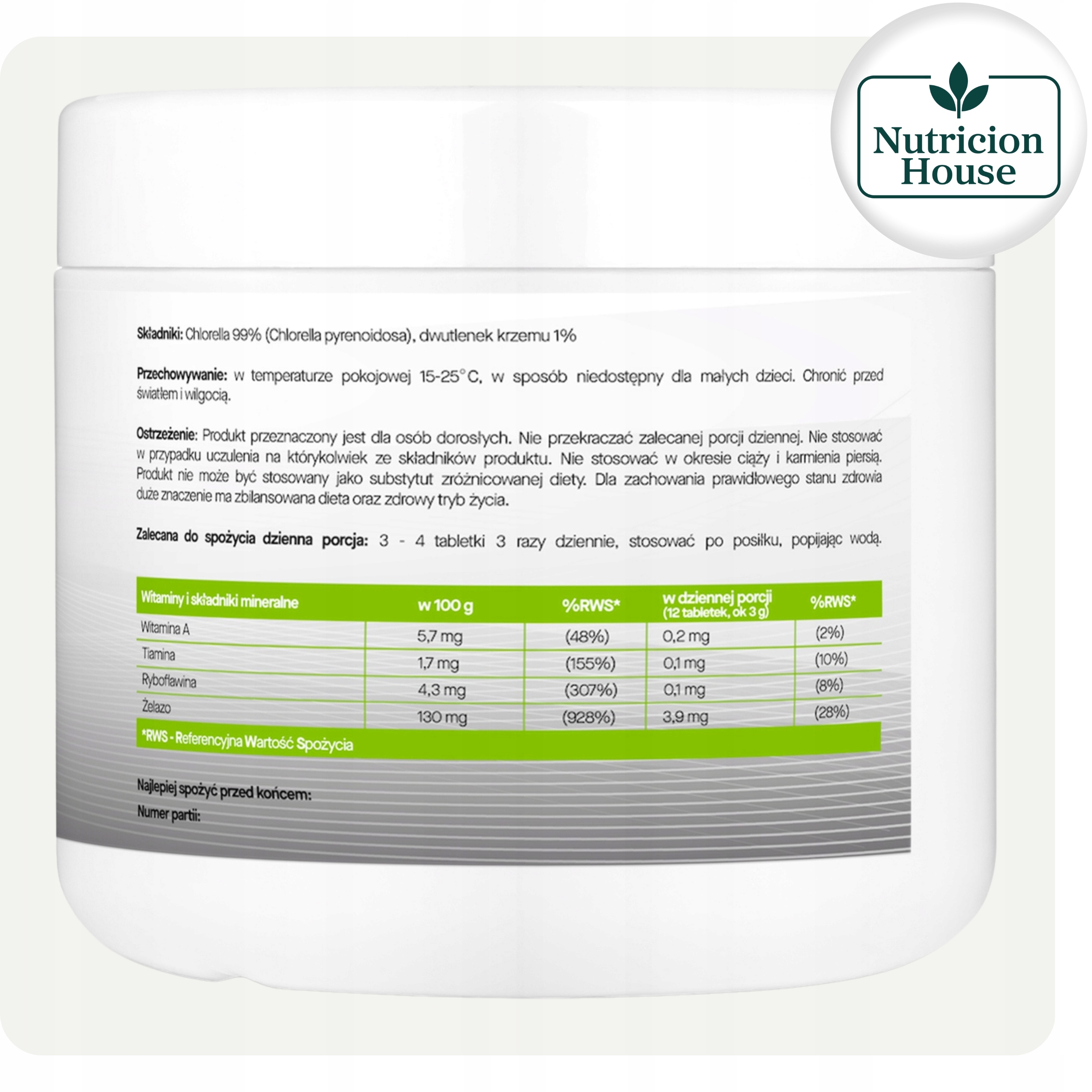 ➡ Композиция составляет 99% хлореллы (хлорелла pyrenoidosa) и 1% диоксида кремния - нет консервантов и ненужных наполнителей.