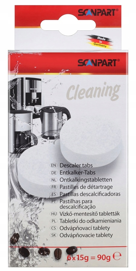 Таблетки для удаления накипи. Их можно использовать для кофемашин, чайников и всей другой бытовой техники. Они быстро и эффективно помогут вам избавиться от накипи, отложений и остатков воды. Они обеспечивают исключительную эффективность и защиту от повторного отложения накипи. В наборе 6 таблеток массой 15 г/шт.