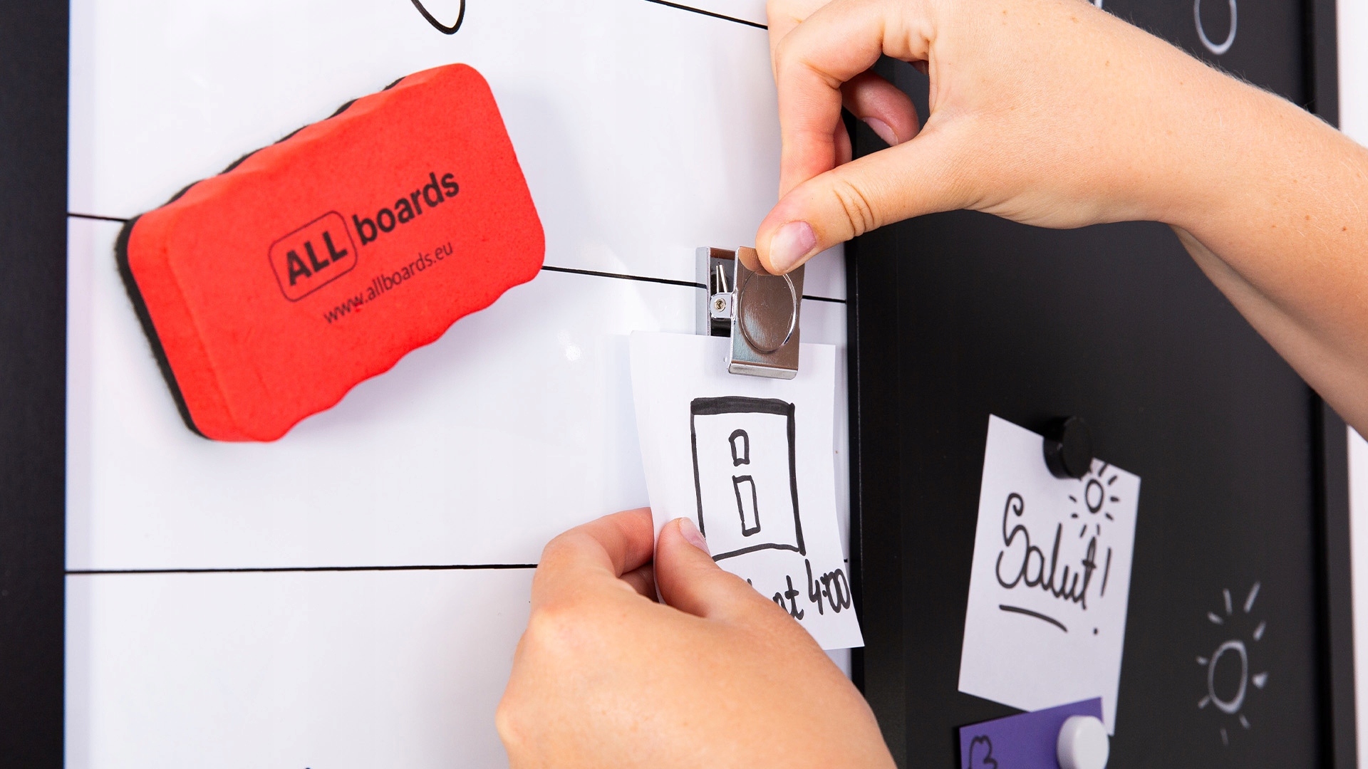 Благодаря разным поверхностям доска приобретает функциональность нескольких досок. Записывайте заметки, создавайте список дел, прикрепляйте квитанции, прикрепляйте фотографии и используйте многими другими способами.