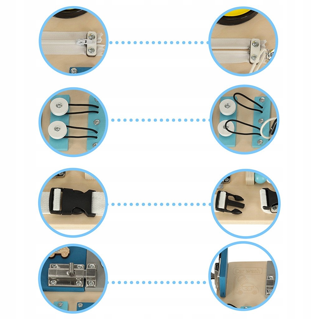 Играя с доской, малыш сможет двигать, нажимать, крутить и открывать все элементы, благодаря чему он будет постоянно развивать свои мануальные навыки и удовлетворять свое любопытство.