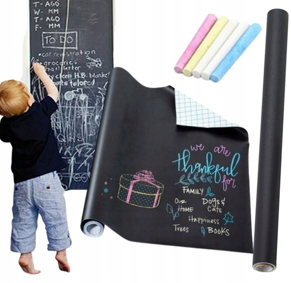 Доска изготовлена ​​из специальной фольги с покрытием, на котором можно писать мелом. Идеально подходит для детской комнаты, кухни, а также в офисе. На нем можно делать различные пометки и рисунки. Классная доска — фантастическая альтернатива рисованию на доске. Его не только просто установить, но и легко удалить. Более того, доскуможно разрезать по выбранным размерам.