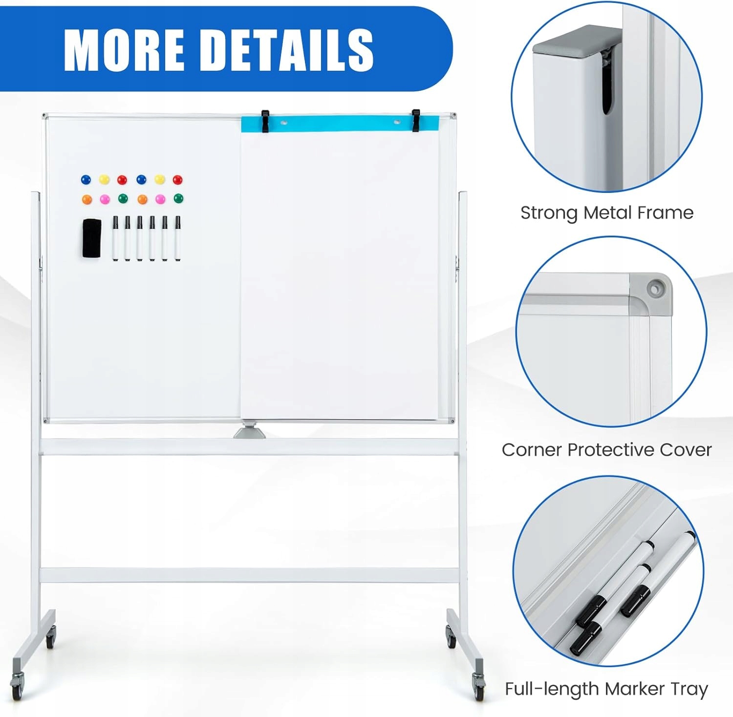 - Высококачественные материалы: эта доска для сухого стирания изготовлена из металлического каркаса, что делает ее очень устойчивой и долговечной. Дополнительная доска для сухого стирания окружена рамкой из высококачественного алюминиевого сплава и угловыми защитными крышками из АБС-пластика, обеспечивающими детальную проверку.