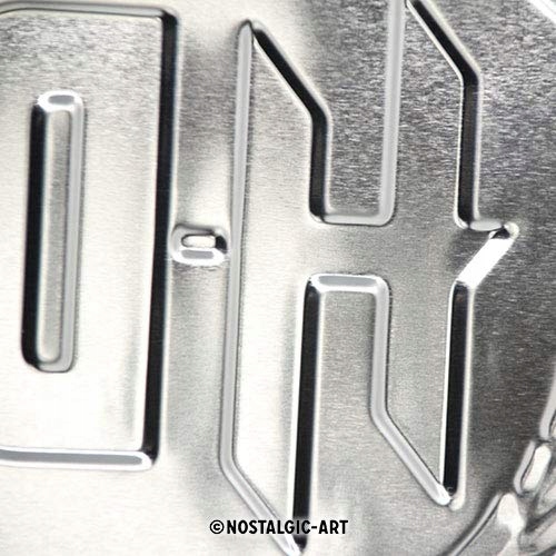 Изготовлен из прочного и жесткого листового металла, размер 30х40см. Окрашены устойчивой к истиранию краской и дополнительно защищены защитным лаком. Форма купола и мотив рельефные. Упаковано в фольгированную упаковку. На вывесках появляются различные тематические мотивы, каждый из которых имеет разное значение или представляет собой историю известного мирового бренда. Продукция НОСТАЛЬГИК-АРТ всегда может стать отличным подарком для ваших друзей или близких.