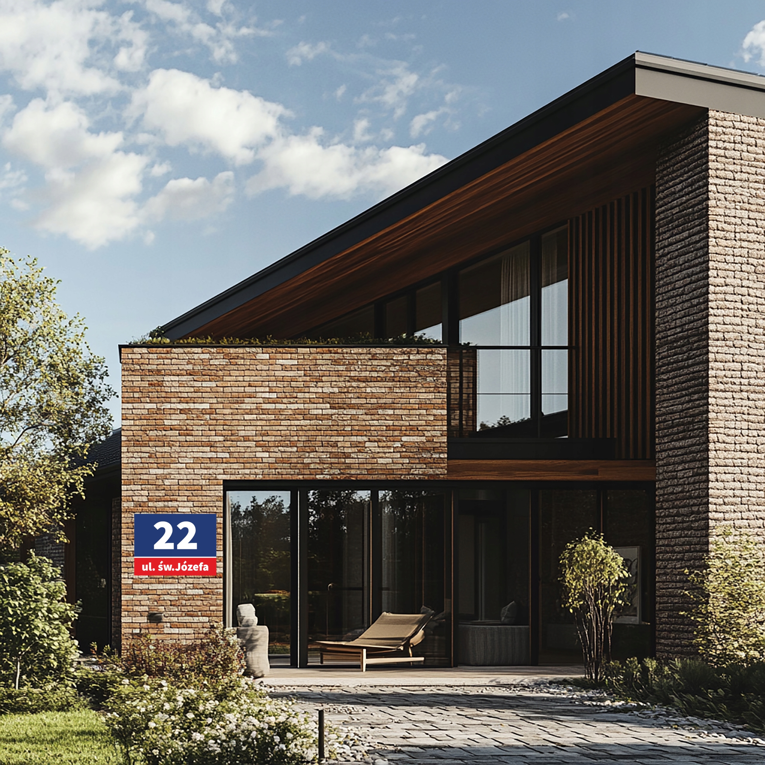 Адресная табличка отлично смотрится на фасаде дома. дом или входные ворота, представляющие собой элегантный и долговечный адресный знак. Благодаря возможности выбора подходящих цветов и узоров он может гармонировать с внешним видом фасада, подчеркивая характер и эстетику объекта.