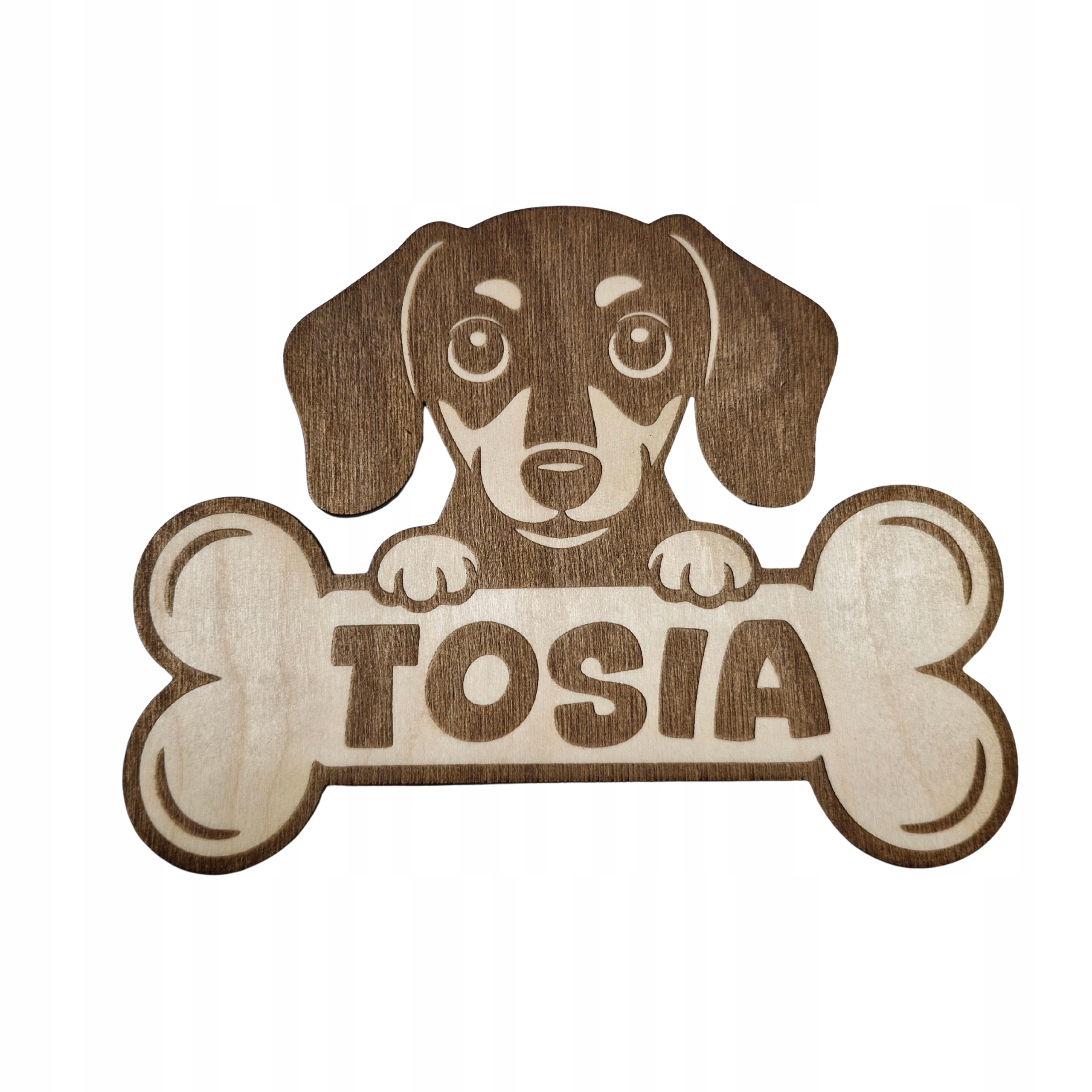 Уникальная, эстетичная деревянная табличка для собаки, изготовленная из фанеры и украшенная точной лазерной гравировкой. Форма костей и очаровательная графика с собаками (100 рисунков на выбор) делают табличку не только практичной, но и красивым украшением.