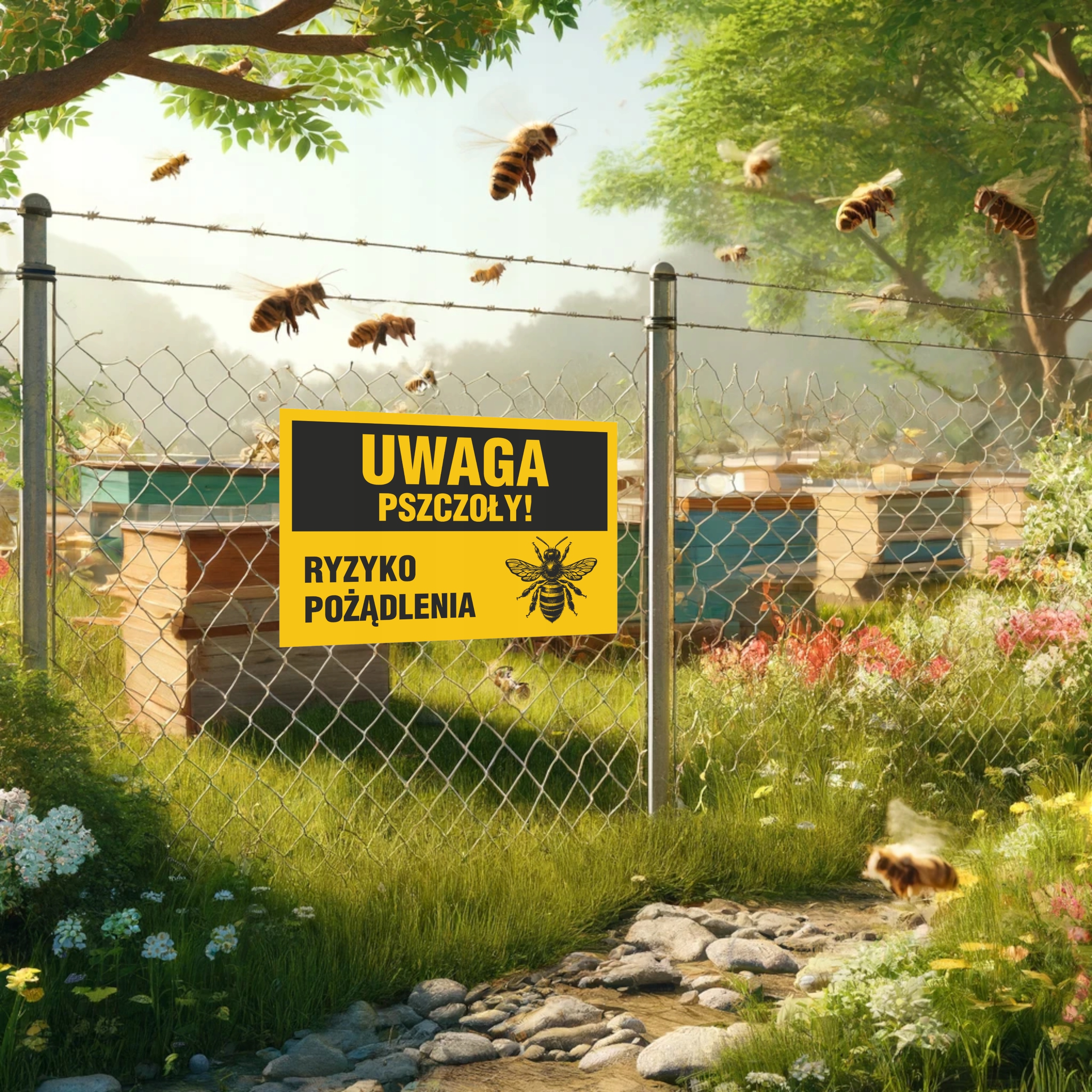 В садах и фруктовых садах, где часто присутствуют пчелы, знаки могут помочь информировать посетителей и работников о потенциальной угрозе. Это помогает им проявлять соответствующую заботу.