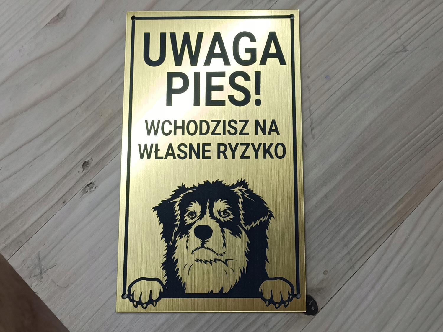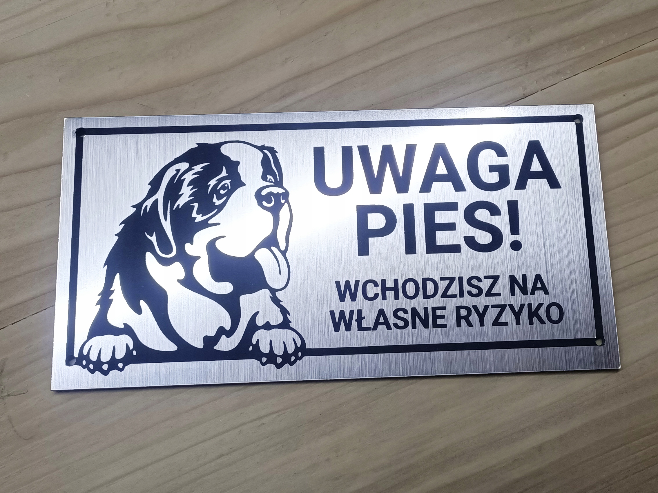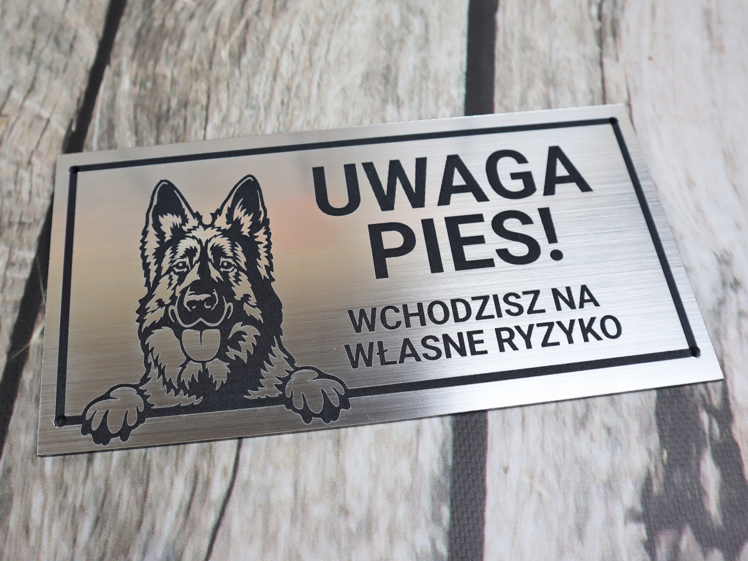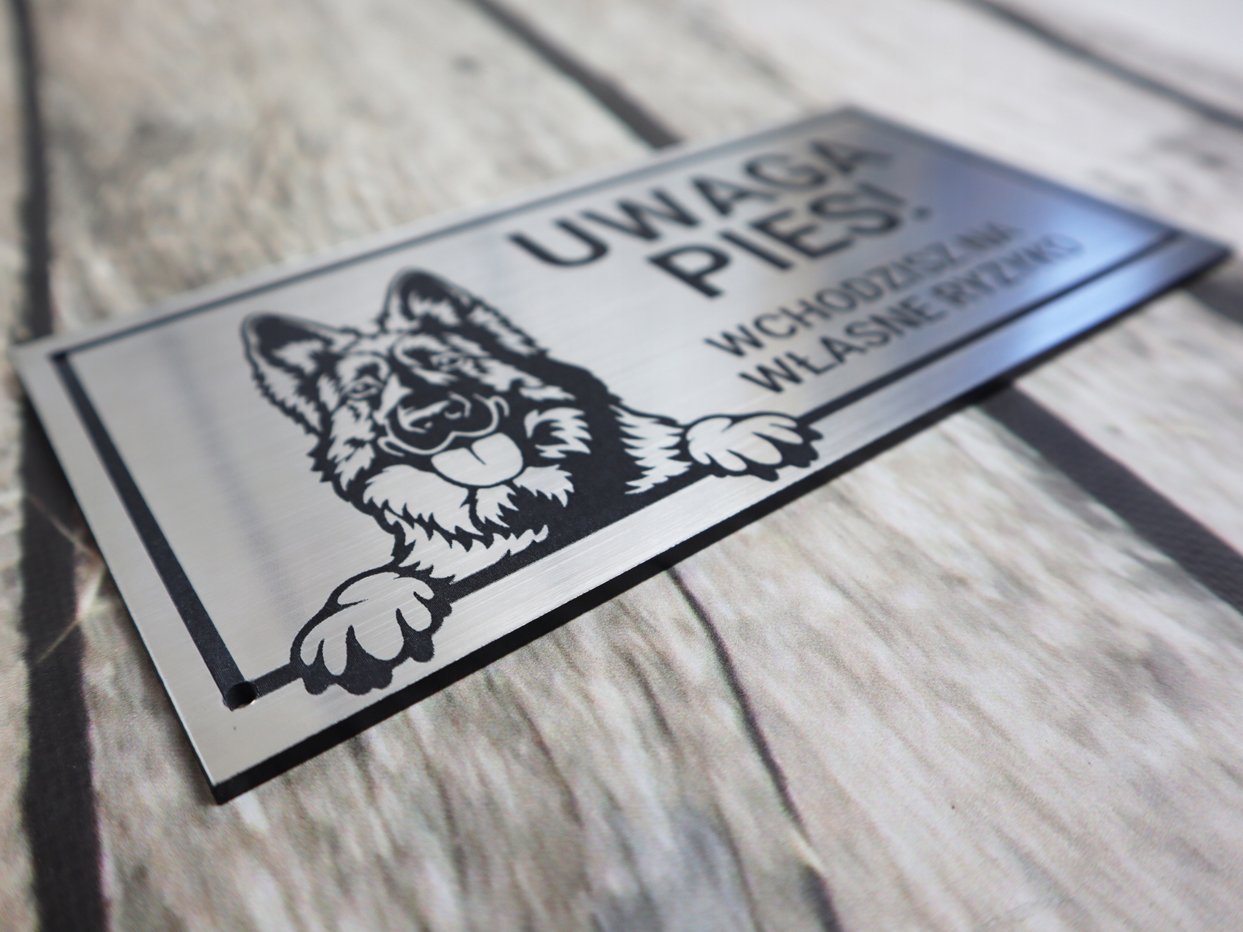 Табличка с гравировкой ВНИМАНИЕ, СОБАКА! размеры: 20 х 10 см.