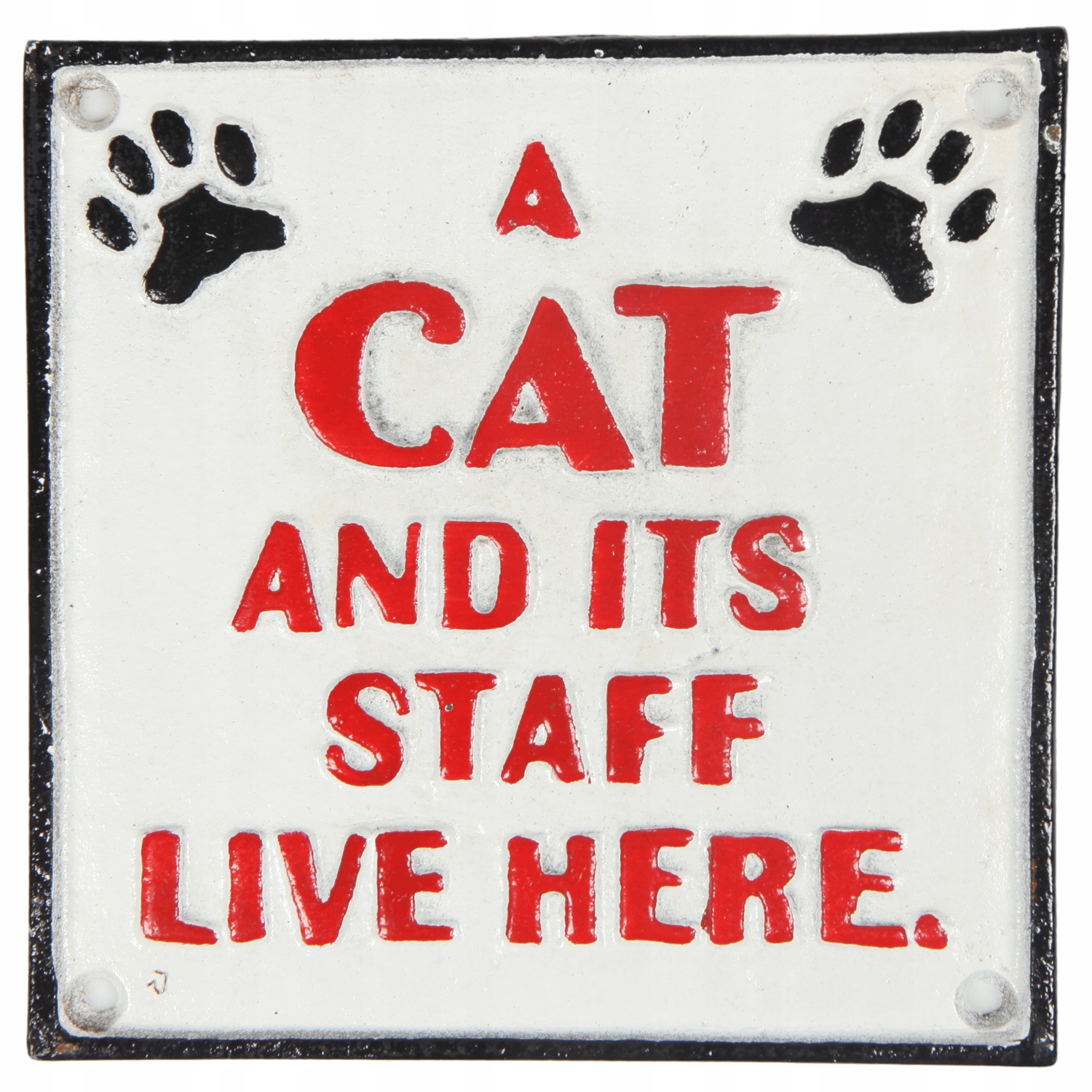 Добавьте очарования своему дому и закажите сегодня оригинальную табличку «Здесь живет Кот и его слуга» с элегантной чугунной отделкой.