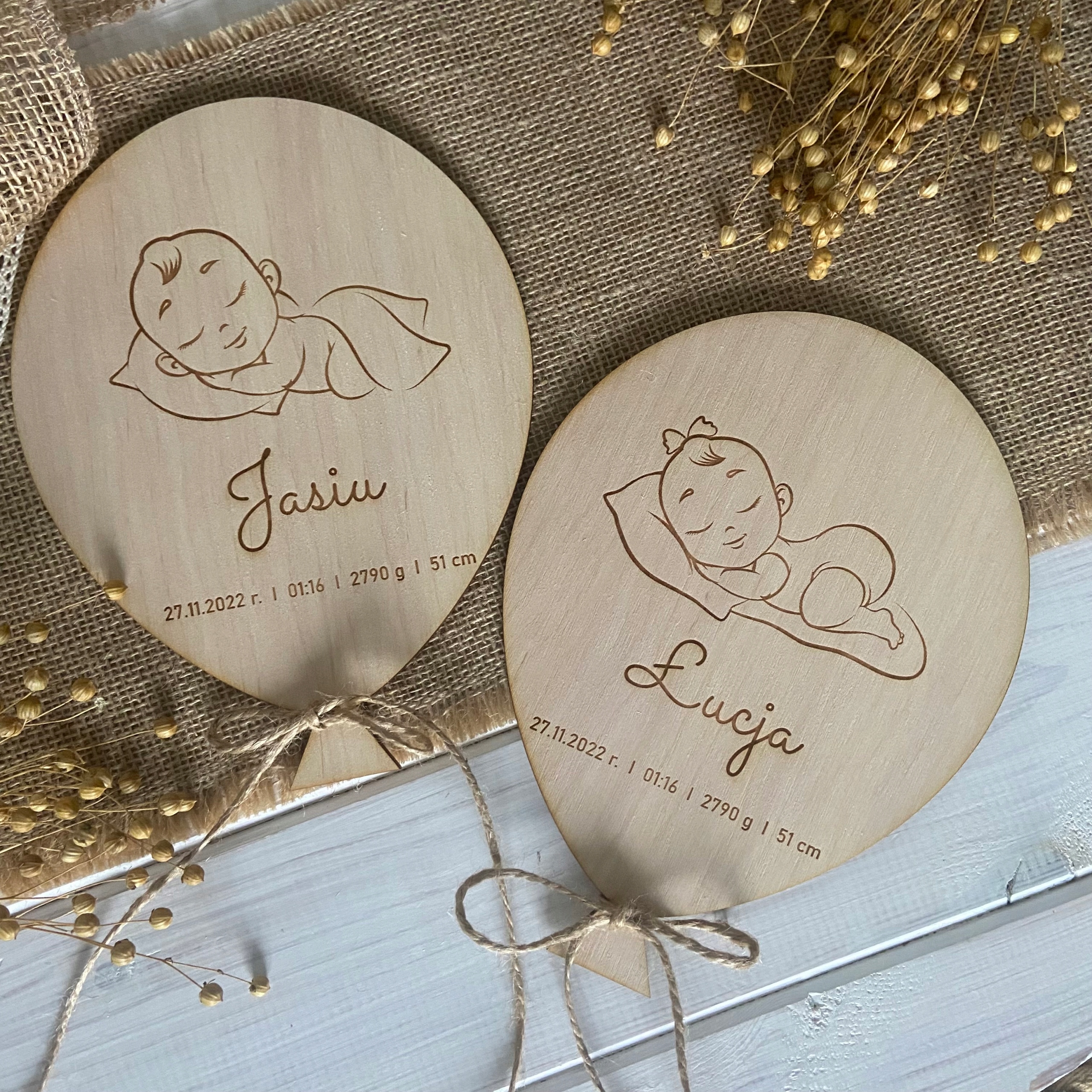 Элегантная табличка со свидетельством о рождении в форме воздушного шара.