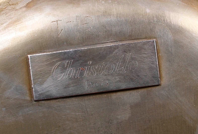 Christofle, компания, основанная Чарльзом Кристофля в 1830 году в Париже. Ее изделия сначала были покрыты металлом, затем посеребрены и позолочены, украшая интерьеры гостиных императора Наполеона III, султана Абдуазиза, а позже и императора Мексики Максимилиана. В начале своей деятельности в компании работали такие выдающиеся скульпторы, как Матюрен Моро, Эмиль Рейбер, Огюст Мадру, а позднее также Эрнест Каррьер-Беллёз и великий Альфонс Муха. Она была награждена почетными медалями и признанием критиков на многих международных выставках. Среди предметов Кристофля, помимо представленного выше стола Surtout de, были столовые приборы, столовые приборы и изысканная посуда.
