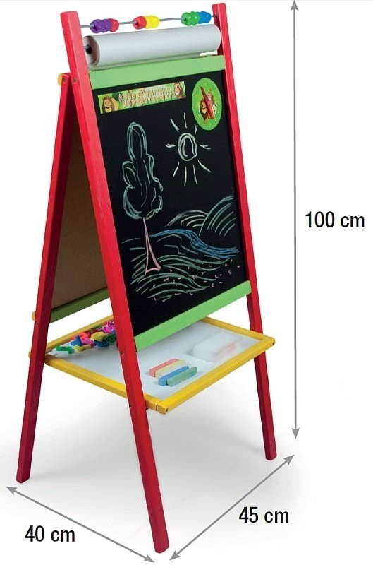 Деревянная, двойная и складная магнитная доска -отличная идея для творческого веселья ваших детей. Обучение через игру - лучший способ правильно развивать детей. Правление является идеальным местом для практики первых букв и цифр. Это также отличное место для развития художественного смысла, делая отличные рисунки. Существует также устройство, которое поддерживает подсчет обучения - Abacus с красочными шариками! С одной стороны, это магнитная доска для написания с маркерами, с другой - традиционная доска мела.