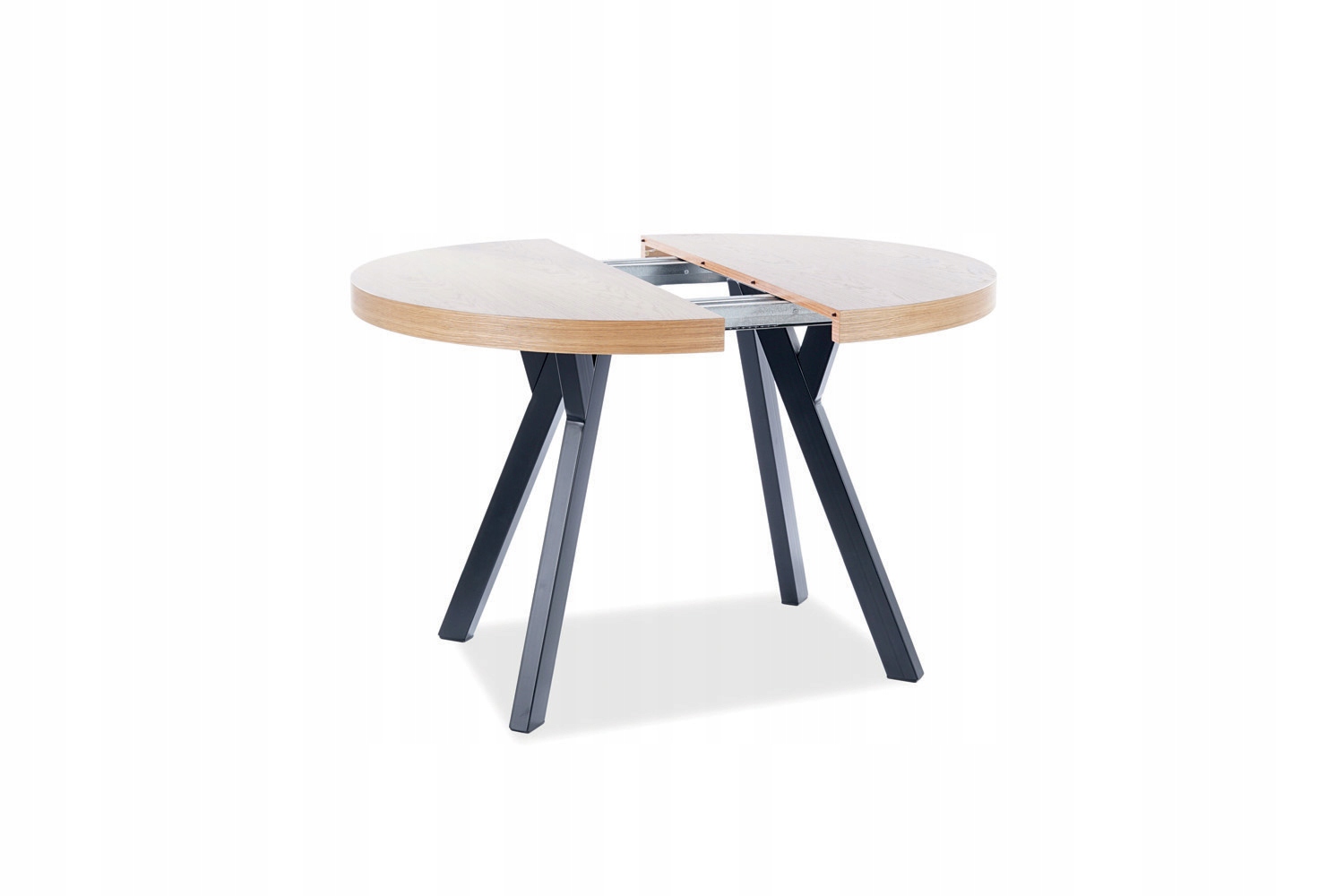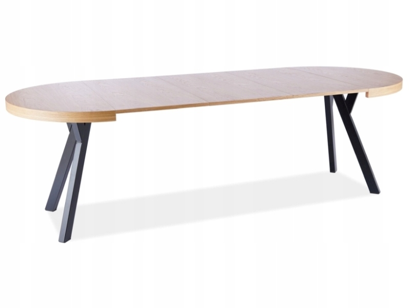 Круглый складной стол доминго представляет собой очень оригинальный предмет мебели. Стол был разработан в соответствии с современным рисунком с видом на ежедневное использование в домашних интерьерах, в том числе в гостиной или в столовой. Тонкий характер мебели также позволяет использовать его в офисах, ресторанах и кафе. Стиль столовой отделки соответствует современным и элегантным интерьерам. Наибольшим преимуществом этой модели является ее универсальность. Столовая вершина распространяется, а набор включает в себя три вставки длиной 50 сантиметров. Благодаря этому предмет мебели может использоваться 4 человека одновременно, а когда развернут до максимального размера до 10 человек. Настройка таблицы может быть адаптирована к текущим потребностям пользователей. Основание мебели было сделано из металла, который был окрашен в черный цвет. Четыре ноги выходят от столешницы, которые эстетически изогнуты и распространяются на внешнюю часть столешницы в основании. Овальная вершина изготовлена из тарелки с натуральным дубовым шпоном. Характерной особенностью столешницы также является его толщина