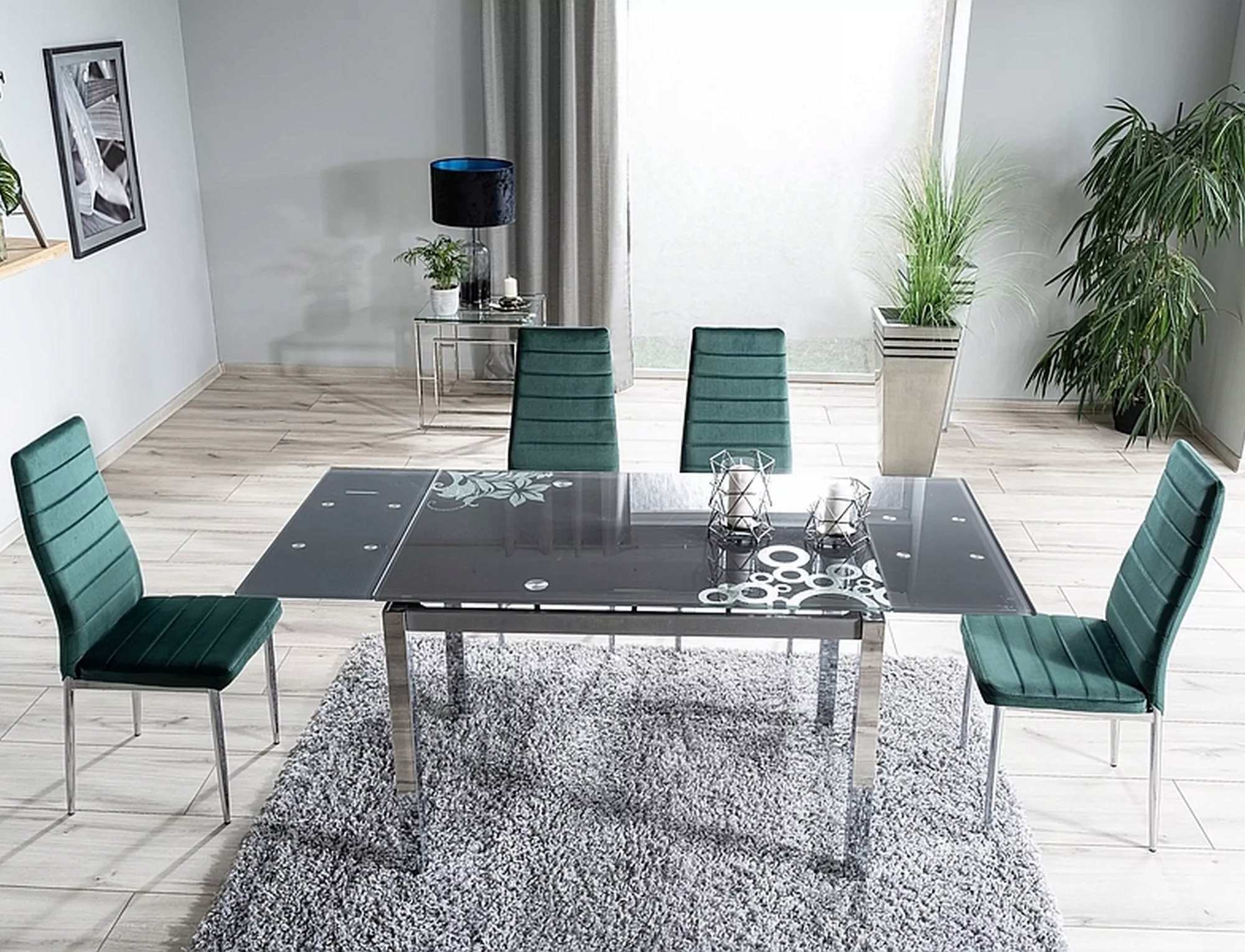 Таблица, верх: закаленное стекло, цвет: черный / рама: хром -метал