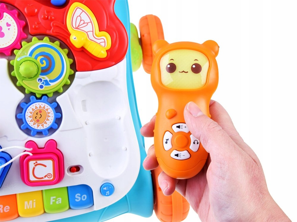Интерактивный толкатель, таблица, панель - это предложение для каждого ребенка, который изучает мир вокруг него. Игрушка была сделана полностью из пластика в очень привлекательных, эстетических цветах с множеством достопримечательностей