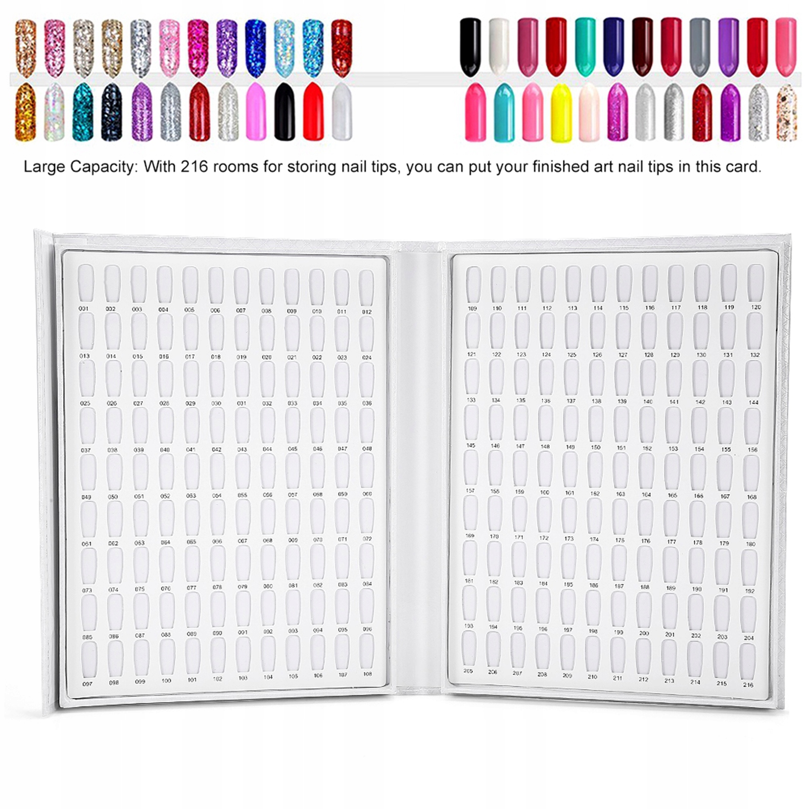 Большая вместимость: благодаря 216 местам для хранения кончиков ногтей вы можете положить на эту карту готовые кончики ногтей. Легко продемонстрировать лак для ногтей.
