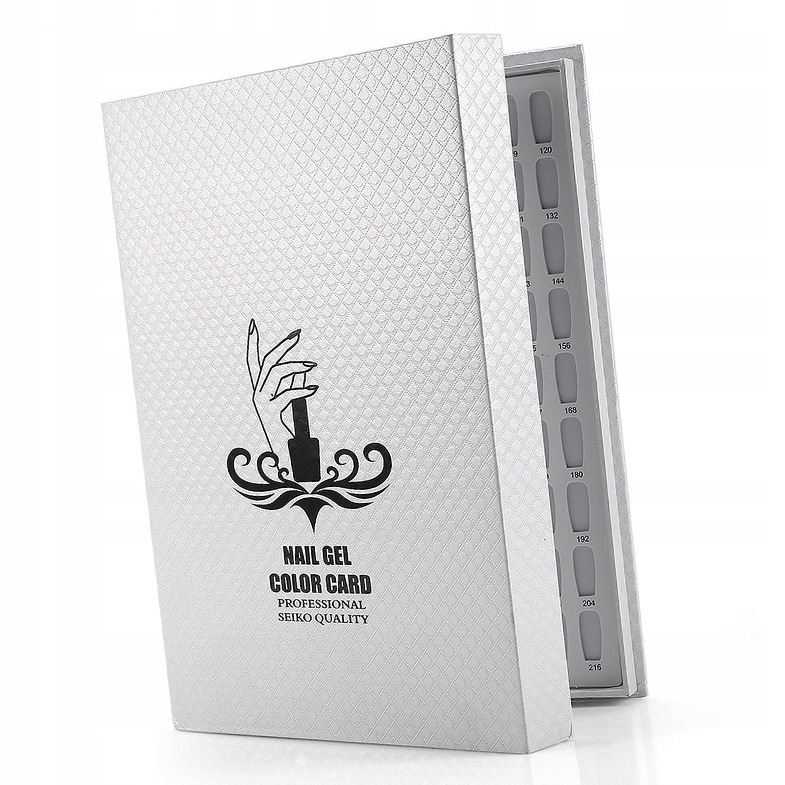 216 цветов гелевых ногтей Таблица ногтей Таблица лаков для ногтей Книга ногтей показывает белый цвет.