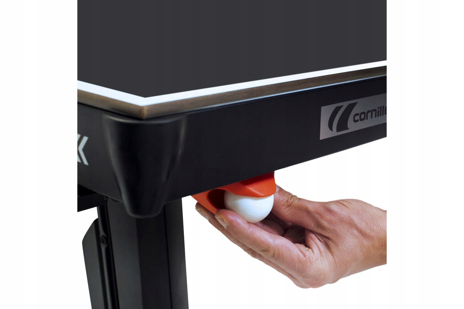 Черный стол с оранжевой отделкой сочетает в себе класс, элегантность и современность. Забота за подробностями и впечатляющий, уникальный дизайн таблицы 700X позволит новое измерение настольного тенниса и даст вам экстравагантность дизайну интерьера. Дизайнеры Cornilleau позаботились о наименьших деталях, добавив некоторые важные дополнения к новой коллекции таблиц, основываясь на мнениях клиентов и их собственном 50 -летнем опыте. Счетчик, ручки для напитков, защита углов стола или полностью скрытая сетка при складывании - это детали, которые отличают стол от других. Эксперты из Корнилло во Франции гарантируют не менее 10 лет веселья.