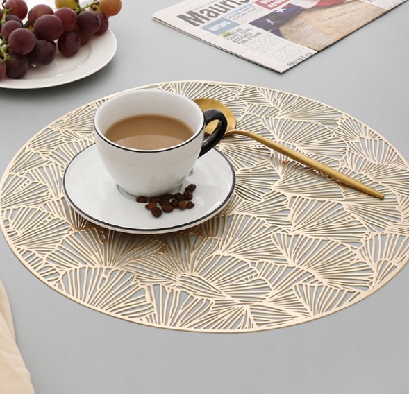 Настольная площадка под тарелкой золотой коврик круглый 38 см P09