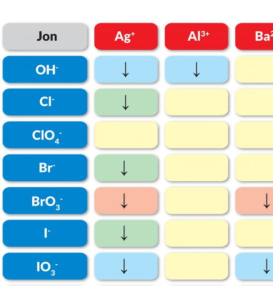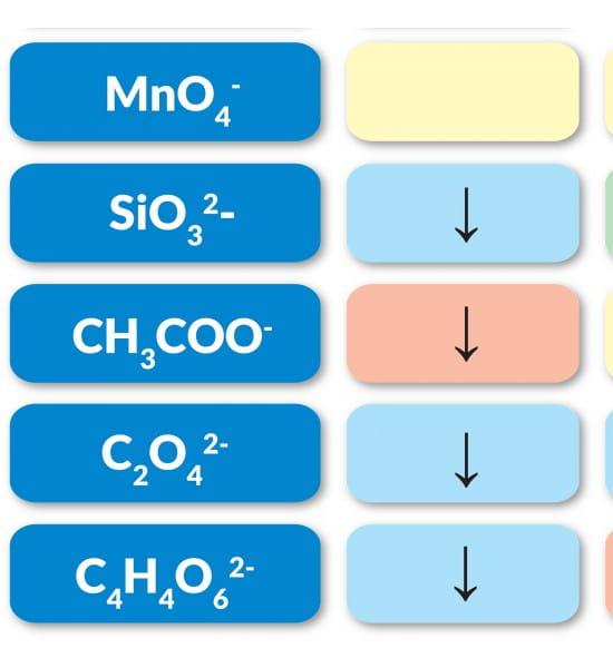 Таблица растворимости, размер 200 х 140 см - представляет собой учебную доску, иллюстрирующую растворимость соединений, состоящих из катионов на одной оси и анионов на другой. Он содержит очень четкую информацию о характере растворимости в воде, т.е.: соединение хорошо растворяется в воде, образуется осадок, из концентрированных растворов образуется осадок, протекают сложные химические реакции.
