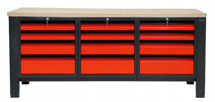Продукт 100 % польский h1> Двухметерный стол с верхней частью толщиной 40 мм и двенадцатью ящиками h1>