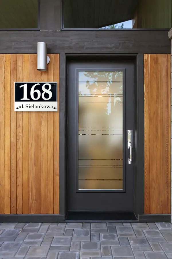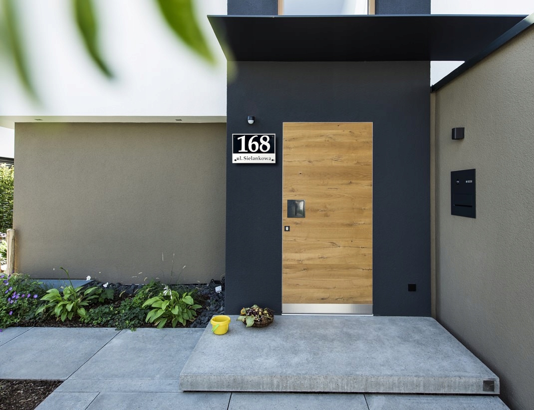 Таблица с номером дома в ее первоначальной функции используется для обозначения дома. Правильно выбранный, однако, может прекрасно украсить фасады и гармонизировать с цветами дома. На этот раз мы предлагаем красивую адресную доску, которая основана на черной тарелке Dibond. На черных монтажных расстояниях мы установили прозрачное плексиглас, и на нем размещаем персонализированный адрес из белого плексигласа 3 мм. Все создает фантастические композиции, дающие трехмерный эффект. Эта цветовая комбинация идеально соответствует более темным фасадам. Идеально подходит для белого фасада дома с черной или серой отделкой (например, черная крыша, входная дверь графита). Версия увеличена 30x40 см.