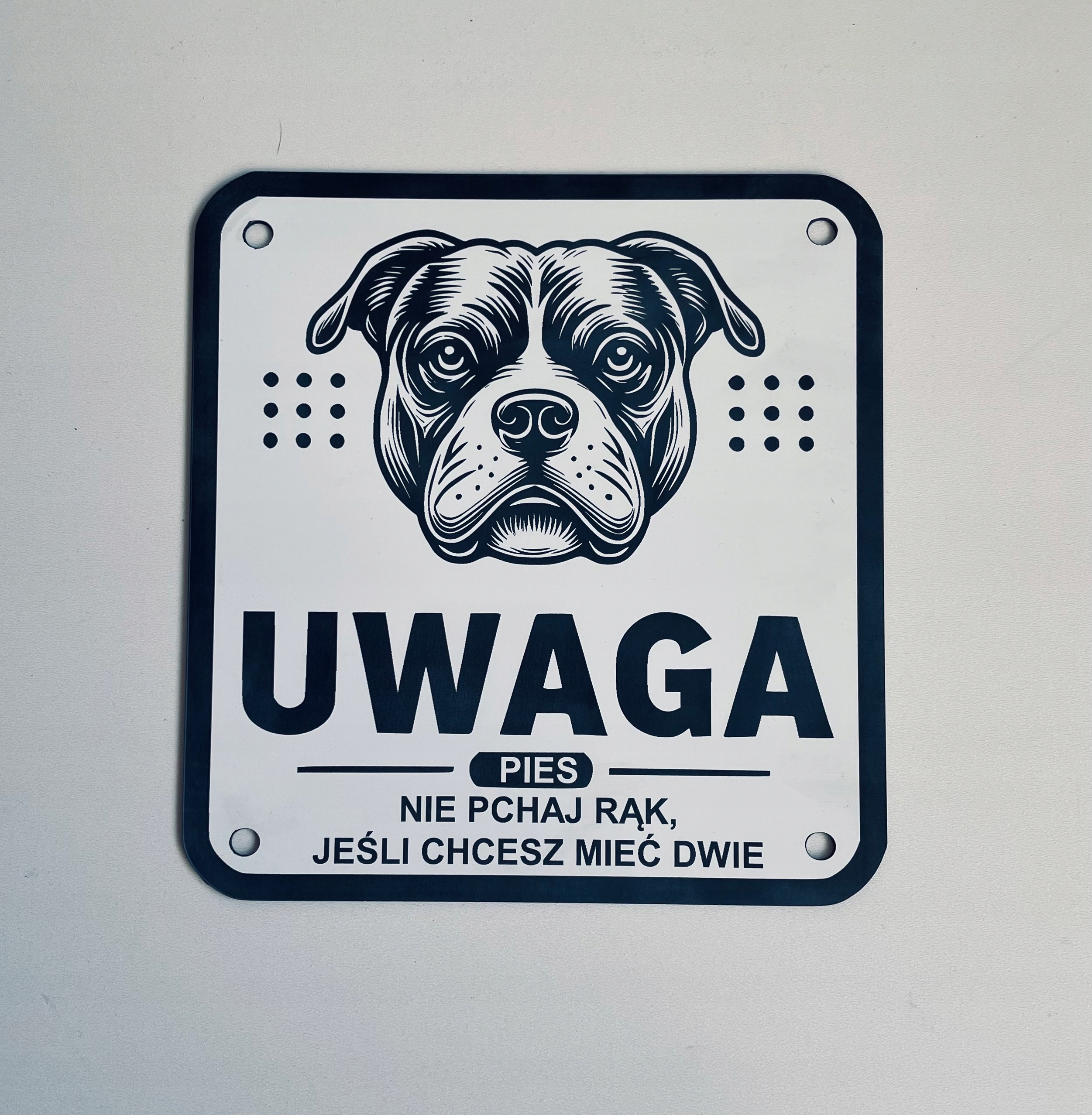 Tabliczka informacyjna uwaga zły pies AMSTAFF