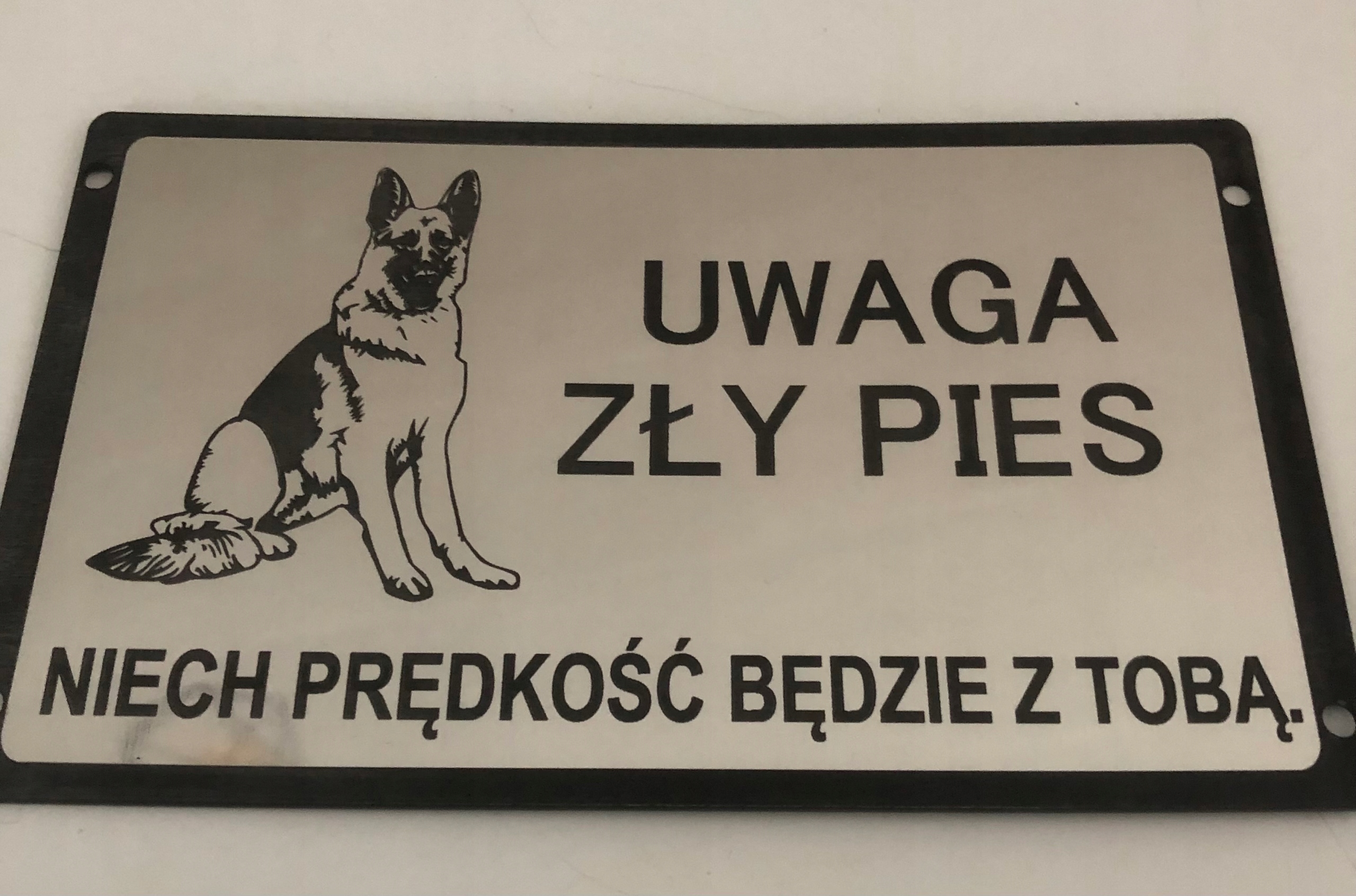 Tabliczka informacyjna uwaga zły pies OWCZAREK NIEMIECKI