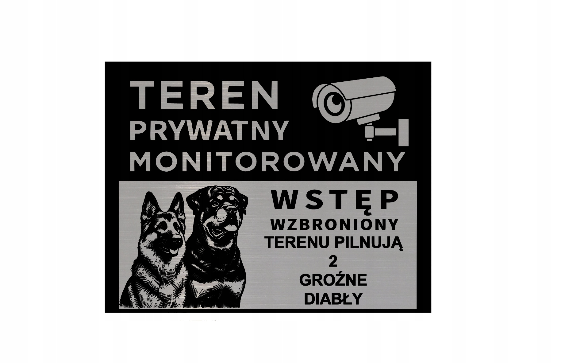 Tabliczka srebrna 2w1 Uwaga Pies + Teren Prywatny Monitorowany