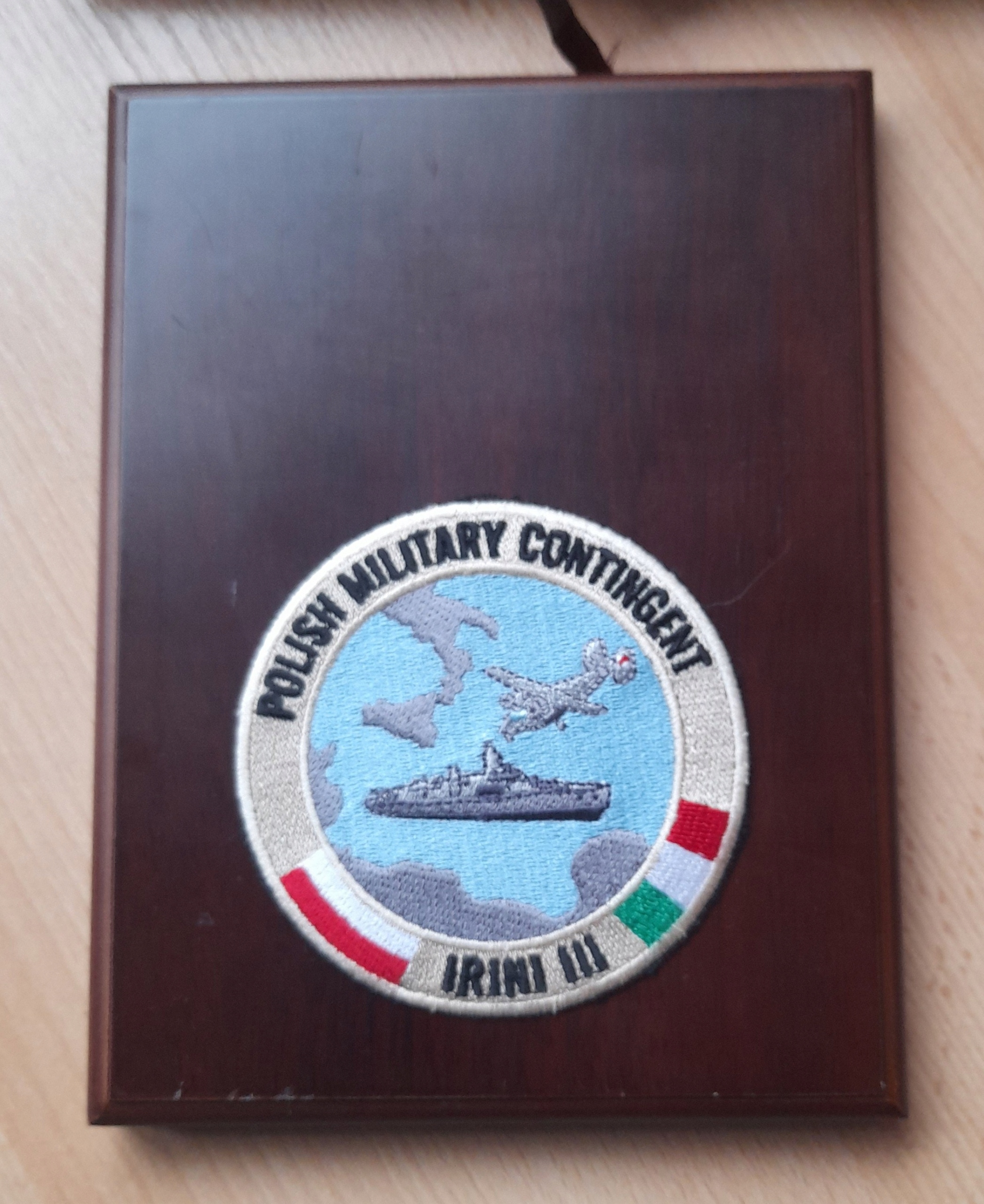 ТАБЛО ПОЛЬСКОГО ВОЕННОГО КОНТИНГЕНТА IRINI III НА ДЕЛЕ, КАК НА ФОТО.