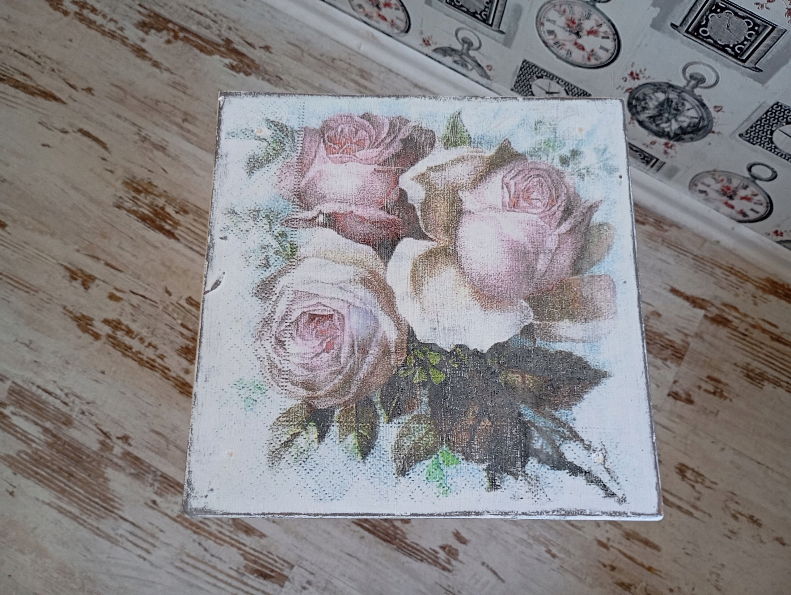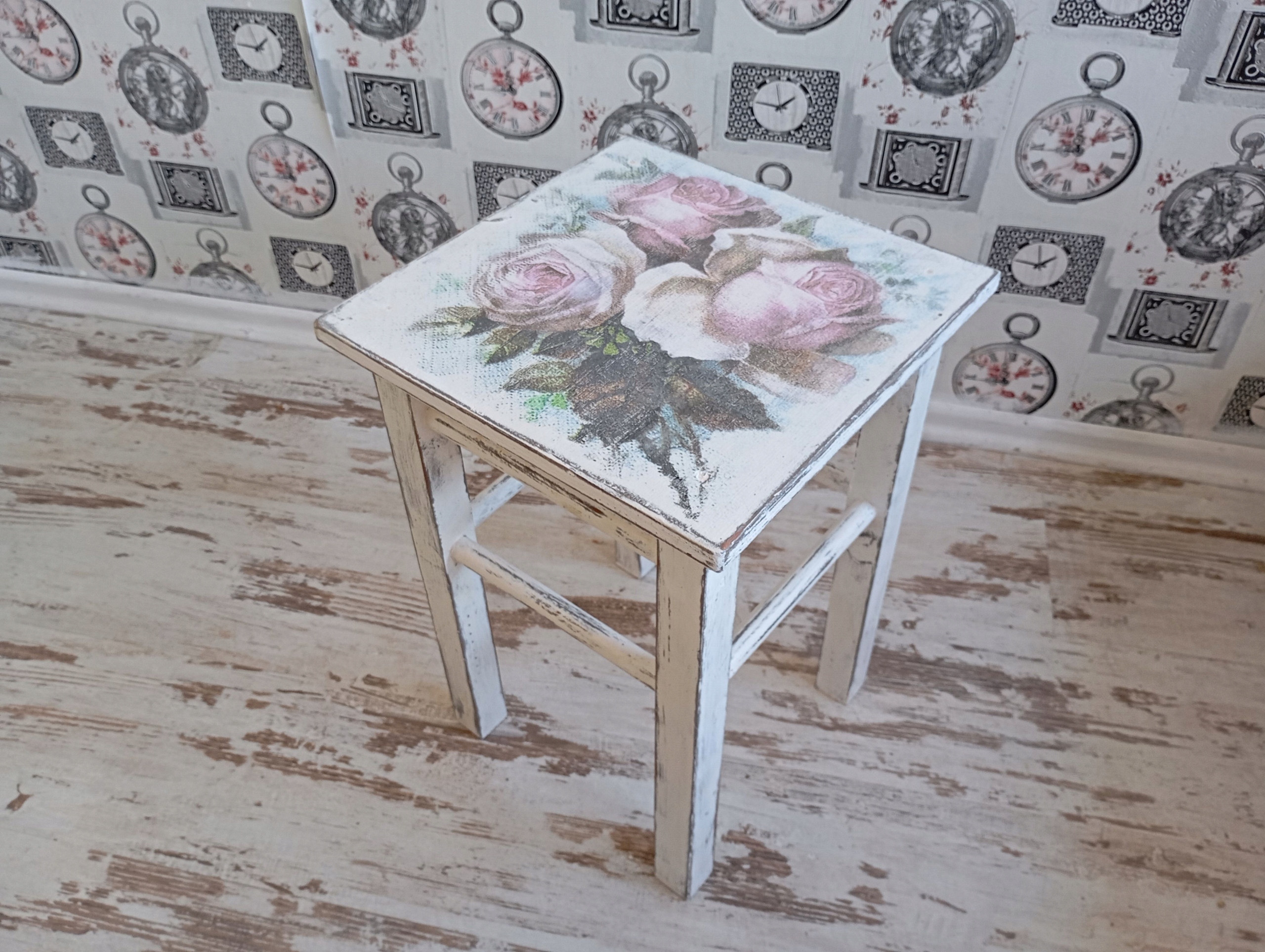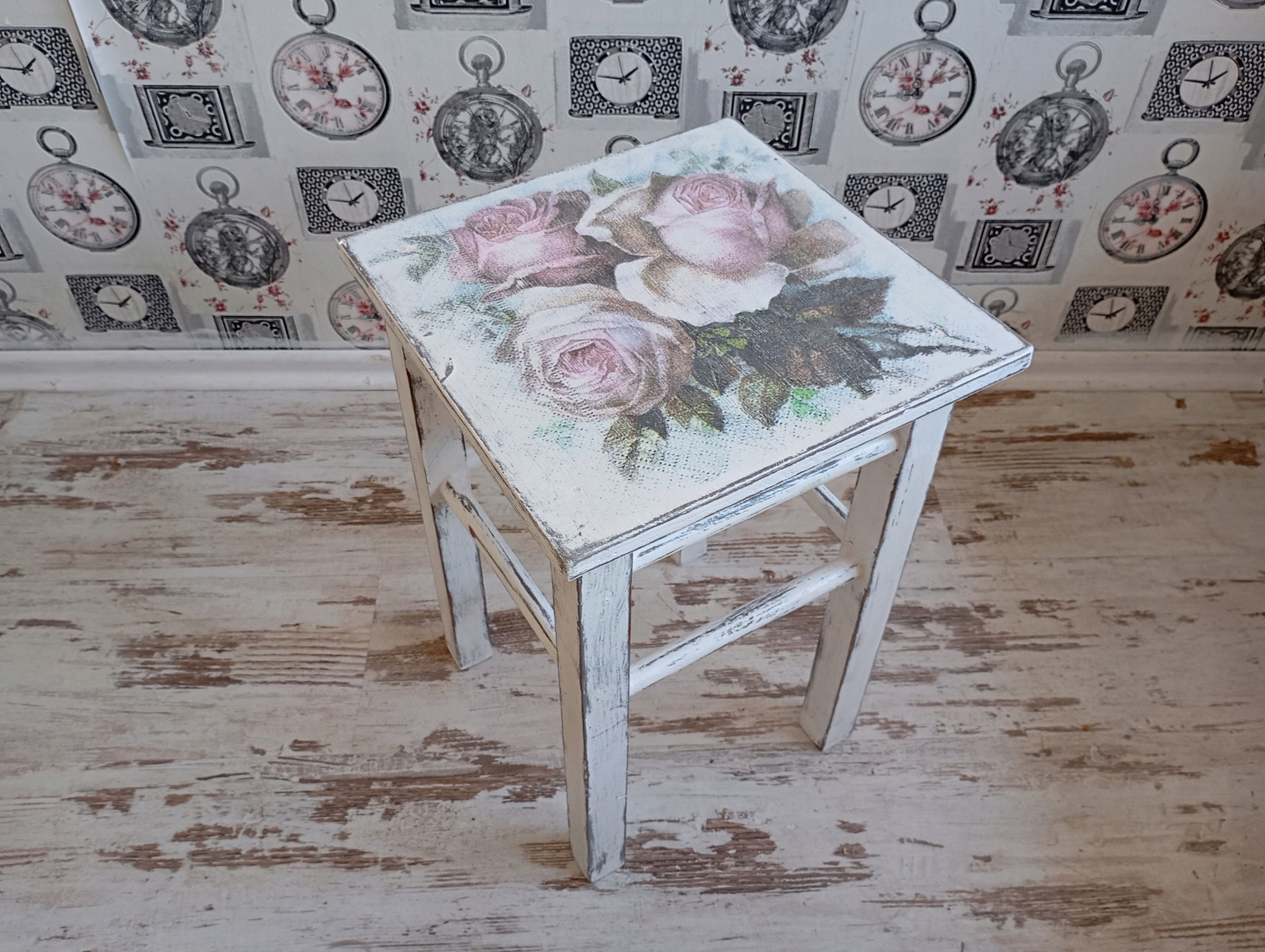 TABORET,STOŁEK, STOLICZEK, RÓŻE, SHABBY CHIC