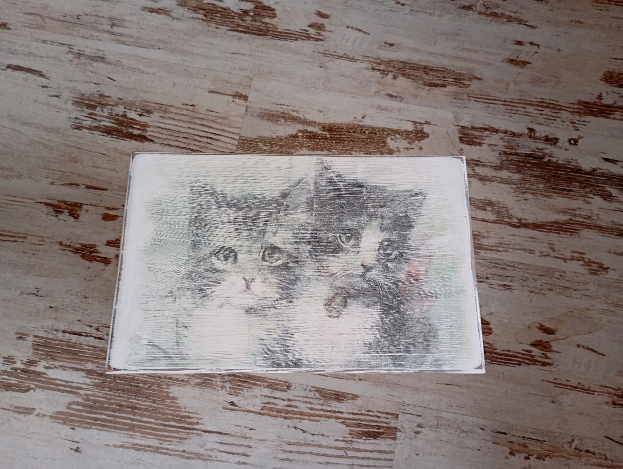 Декорированное сиденье ручная работа с мотивом котенка.