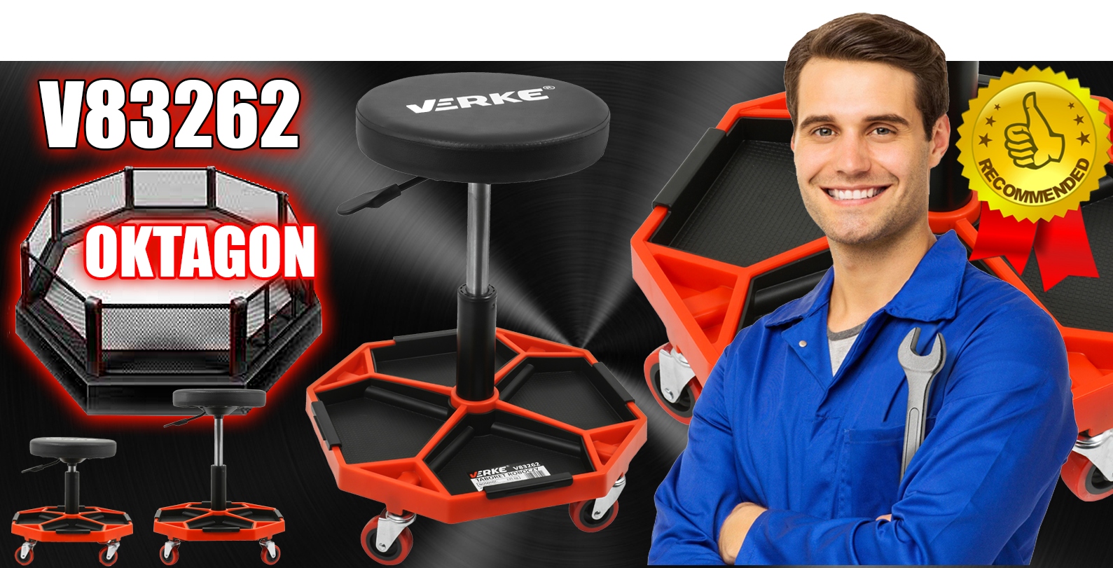 Табурет для мастерских Verke был разработан для использования в профессиональных мастерских, автосервисах, ремонтных мастерских, а также отлично подойдет для домашнего гаража. Он имеет поворотное сиденье и 4 поворотных колеса, которые повышают его мобильность. Практичное решение – оборудовать его большой полкой, на которой механик сможет разместить инструменты, используемые во время работы. Покрытие удобного сиденья выполнено из ПВХ. Благодаря пневматической регулировке высоты его можно легко подогнать под рост человека.