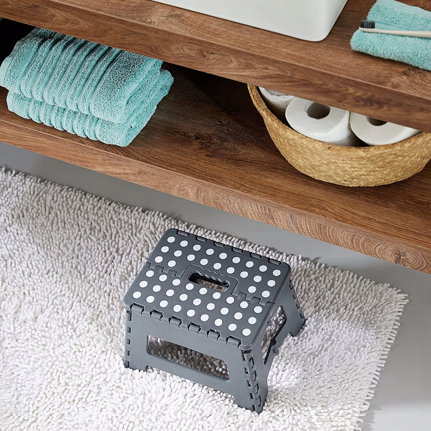 Некоторые домашние дела требуют использования подходящей высоты. Чтобы удобно мыть окно, повесить шторы или избавиться от паутины за высоким шкафом, стоит использовать складной табурет. Изделие «1 шаг» подойдет не только для домашних дел, его также можно с успехом использовать в мастерской или подвале. Элемент имеет небольшой размер и благодаря своей складности поместится в отсек для хранения инструментов для чистки. Вы также можете легко его транспортировать. Табурет легкий, но при этом прочный благодаря использованию прочного пластика. Аксессуар прослужит вам долго, сохраняя свой естественный вид. Если вы ищете другие продукты, которые облегчат работу по дому, ознакомьтесь с нашим предложением.