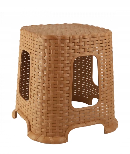 Предлагаемый табурет полностью изготовлен из пластика. Его поверхность обманчиво похожа на ротанговое переплетение.