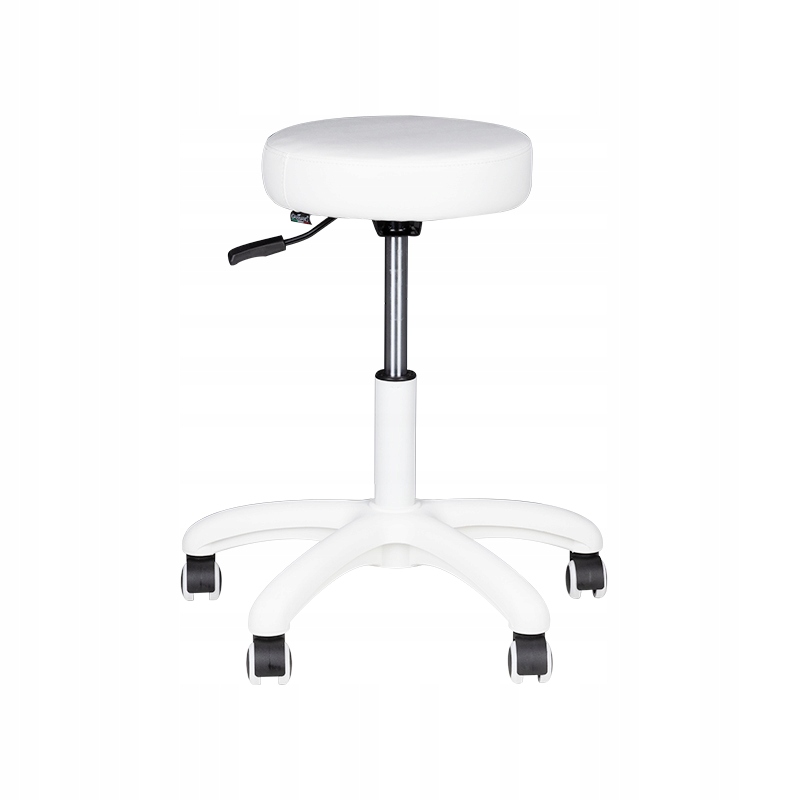 Удобный косметический табурет, устойчивый на пятизвездочном основании, с прорезиненными колесами. Незаменимый предмет мебели в салоне красоты.