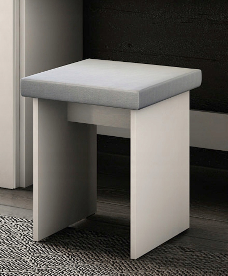 Табурет — дополнение к любому туалетному столику. Идеальный предмет мебели, на котором можно удобно сидеть и наносить макияж. Основание < Табуретка изготовлена из того же ламината, что и туалетный столик, а сиденье – из обивочной губки, отделанной высококачественной тканью серого цвета.