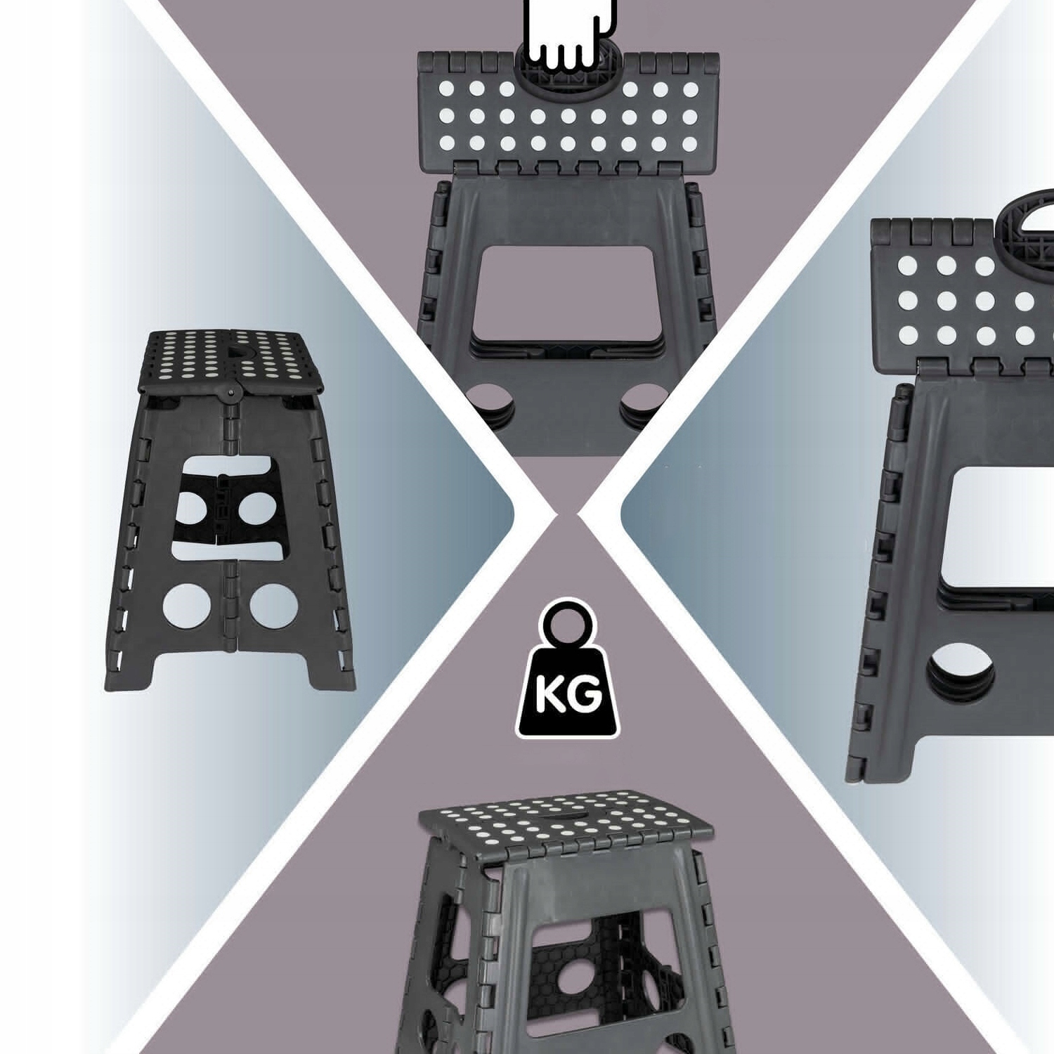 Табурет изготовлен из полипропиленового материала, обладающего высокой твердостью, прочностью, долговечностью и грузоподъемностью 150 кг. На табурете высотой 39 см можно сидеть или стоять. Он имеет улучшенную складную планку, которая предотвращает его складывание, когда он стоит внутрь.