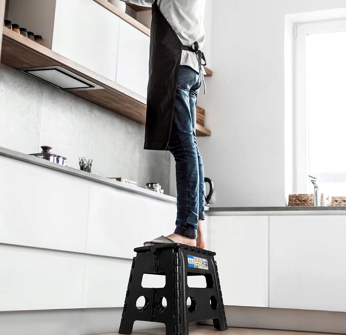 Ступенька-стремянка в сложенном виде экономит более 90% места в вашем шкафу. Переносную складную ступеньку весом всего 1,82 кг можно легко транспортировать, она быстро и легко складывается для удобного хранения, поэтому ее можно открыть с помощью ручки и. Вы также можете спрятать ее в углу дома, поскольку она очень компактна.