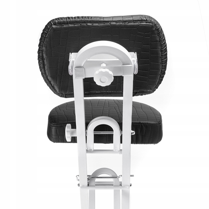 Подставка для ног и сиденье имеют 5-кратное наклонение. регулировка высоты по уровню, что позволяет удобно и устойчиво сидеть людям разного роста. Табурет имеет спинку с плавной регулировкой высоты и угла наклона.