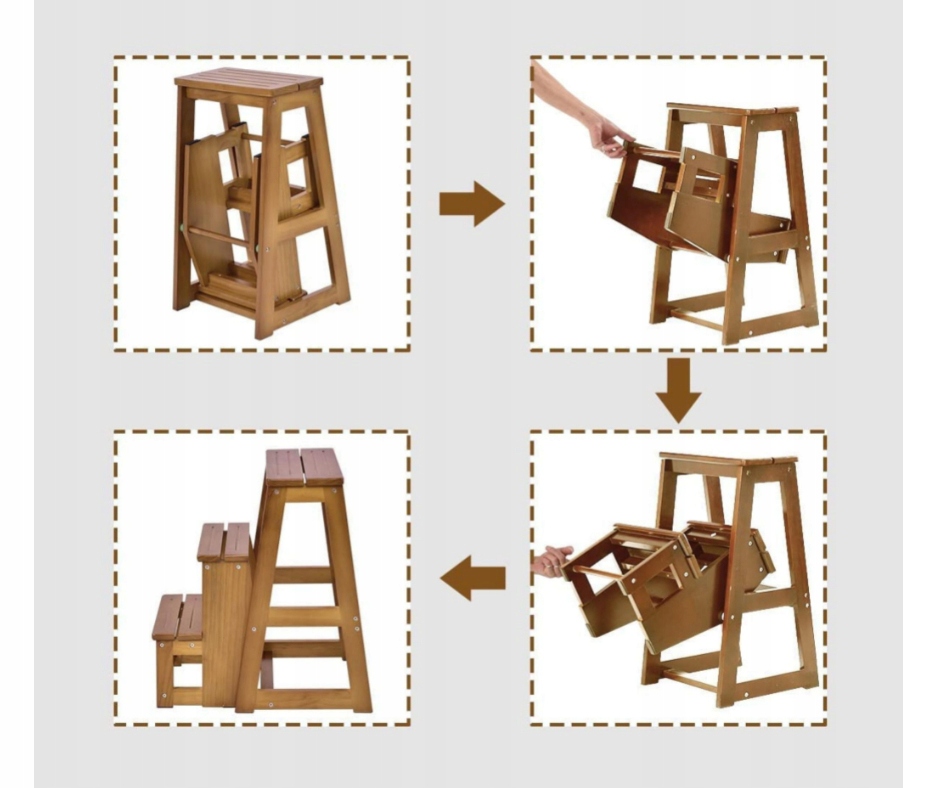 Знаете эту боль, когда не можешь дотянуться до чего-то с верхней полки шкафа? Лестница была бы кстати, но вам не хочется спускаться в подвал? Обратите внимание на этот складной стул-лестницу или, если вы предпочитаете, табурет со ступенькой! В сложенном виде это может быть удобный стул, а в разложенном виде — практичная лестница или просто мебель :)