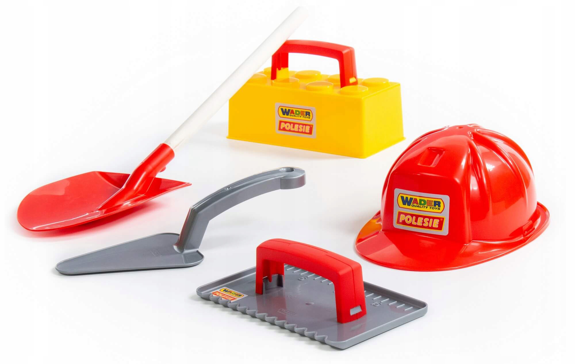 В наборе есть все необходимое для творческой деятельности, развивающей воображение и координацию движений. Маленьким каменщикам найдутся лопата, защитная каска, мастерок, каменный мастерок и большая форма с ручкой – кирпичик. Чего еще желать?