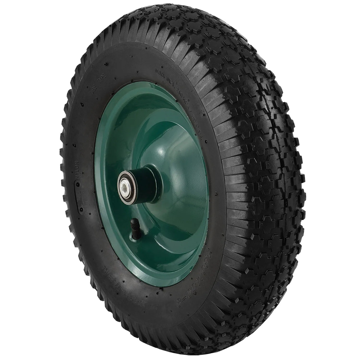 Большая надувная шина диаметром 40 см крепится на обод. Колесо позволяет легко и удобно толкать и тянуть садовую тачку. Пневматические шины позволяют хорошо компенсировать неровности.