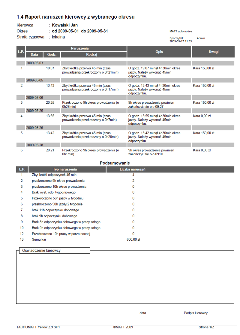 TACHOMATT Yellow D программа анализа рабочего времени